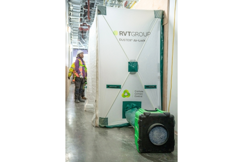RVT Group supplied a DUSTEX® Raptor to extract dust directly from the fit-out activity and paired it with a DUSTEX® Air-lock and DUSTEX® Aire Guardian enclosures. This separated work areas and ensured dust created did not migrate to other areas, creating an all-in-one solution when paired with dust extraction.