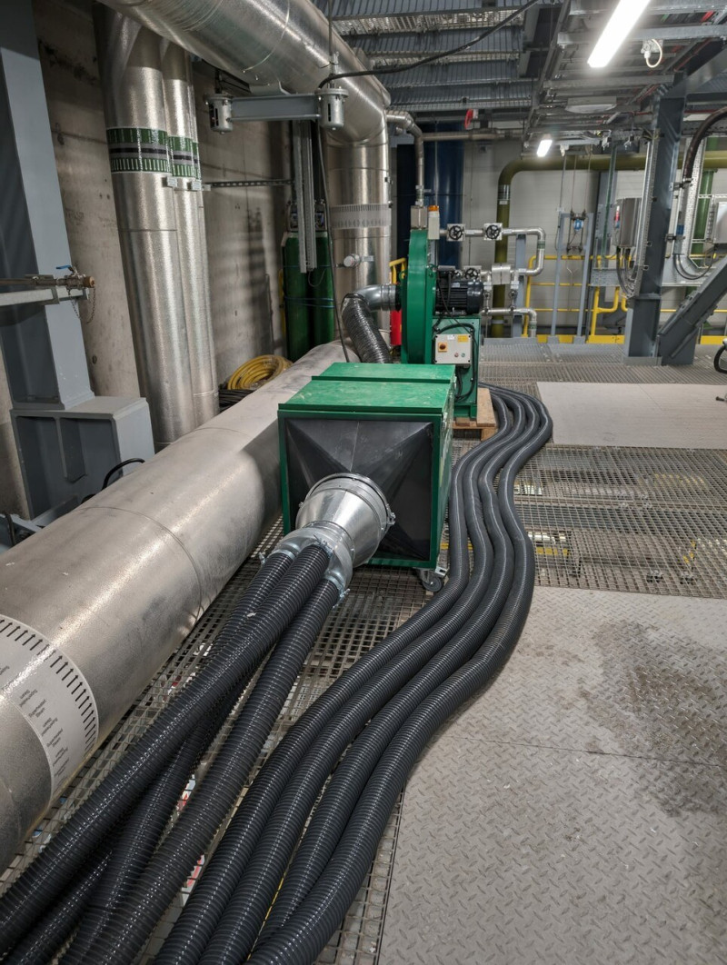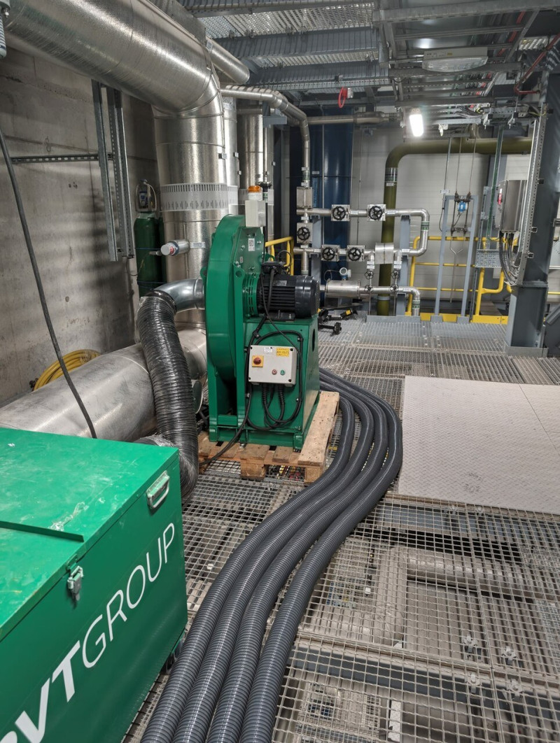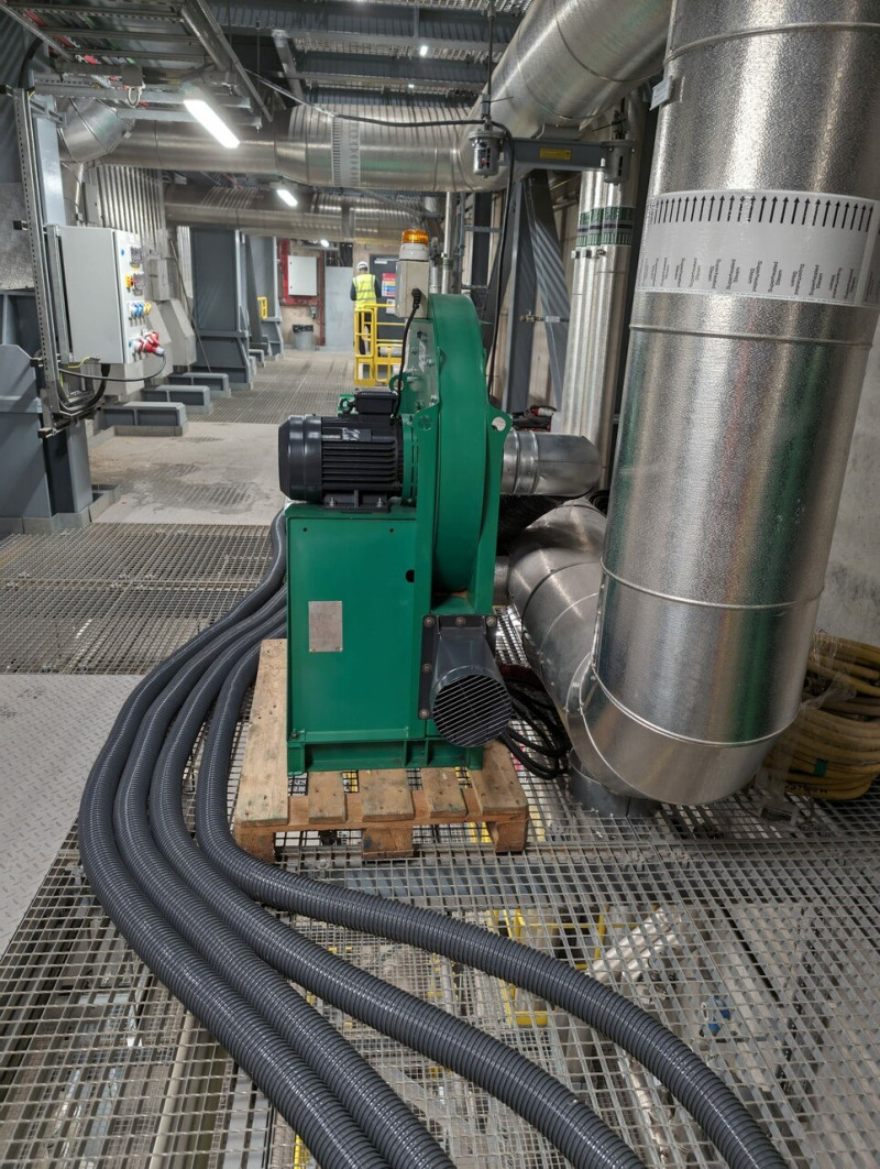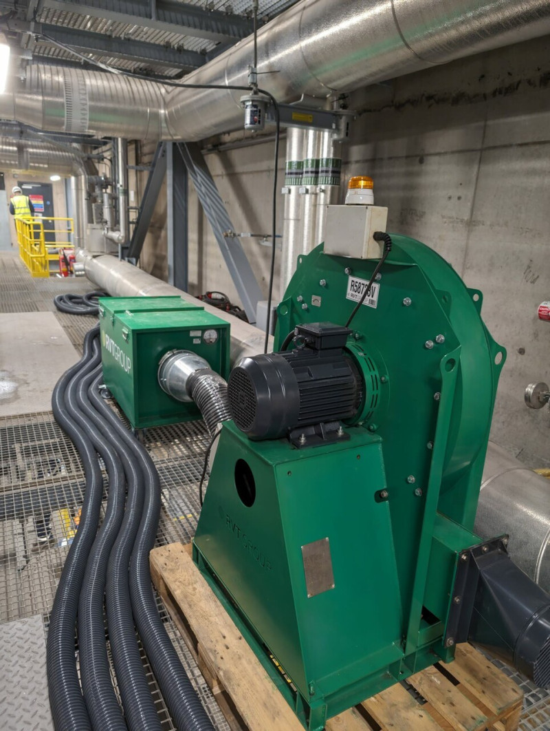 For the contractors carrying out grit blasting and small scale burning on the grate at the bottom of the furnace, we installed a VENTEX® 300M Centrifugal fan in conjunction with RAVEX® Wandafilta Plus Kit.