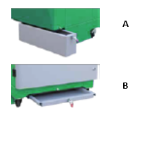 The filter unit consists of one vertical pre-chamber, where the heaviest dusts are filtered out, and fall into a collecting bin(A). The finer particulate then continues to follow the labyrinth of high efficiency filtering cartridges, where it is filtered andcollected in the second bin (B). Finally clean air is exhausted through the top grill.