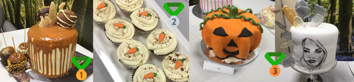 In joint third place were Layla Devenish and Tim Chattel whose creative cakes wowed the judges, and their efforts won them a bottle of wine each to enjoy. In second place, and winning a bottle of champagne, was Laura Capp for her carrot cake cupcakes that were small in size but big in flavour. First place was taken by Ketsia Chattel whose amazing carrot cake, topped with toffee apples, was a perfect autumnal treat! Ketsia took home a box of delicious chocolates, a stylish new apron and a £50 restaurant voucher.